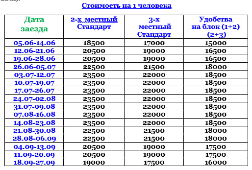 В стоимость входит: проезд комфортабельным автобусом; проживание в номерах выбранной категории; сопровождение представителем турфирмы; страховка от несчастного случая.