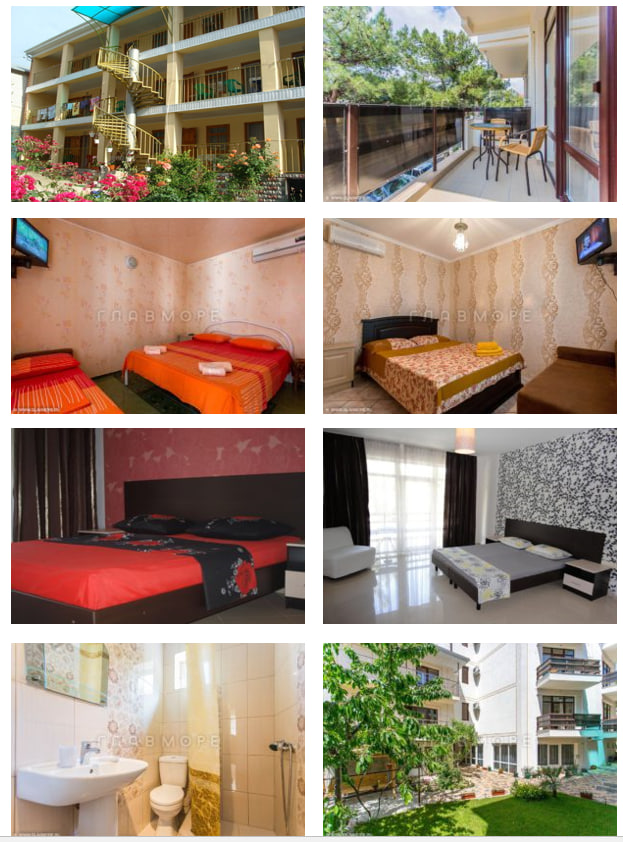 «Стандарт»: 2-х, 3-х, 4-х местные номера с удобствами (WC, душ, ТВ, холодильник, сплит-система, односпальные или двуспальная кровати, кресло-кровать, прикроватные тумбочки, шкаф, журнальный столик, стулья, зеркало, терраса со столиками, сейф).