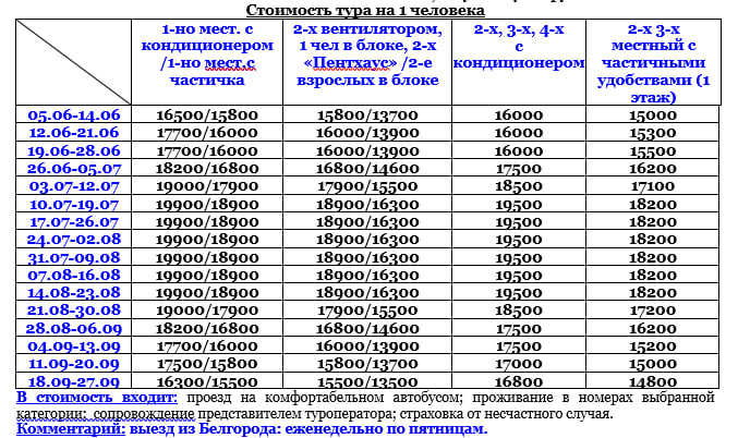 Комментарий: выезд из Белгорода: еженедельно по пятницам.