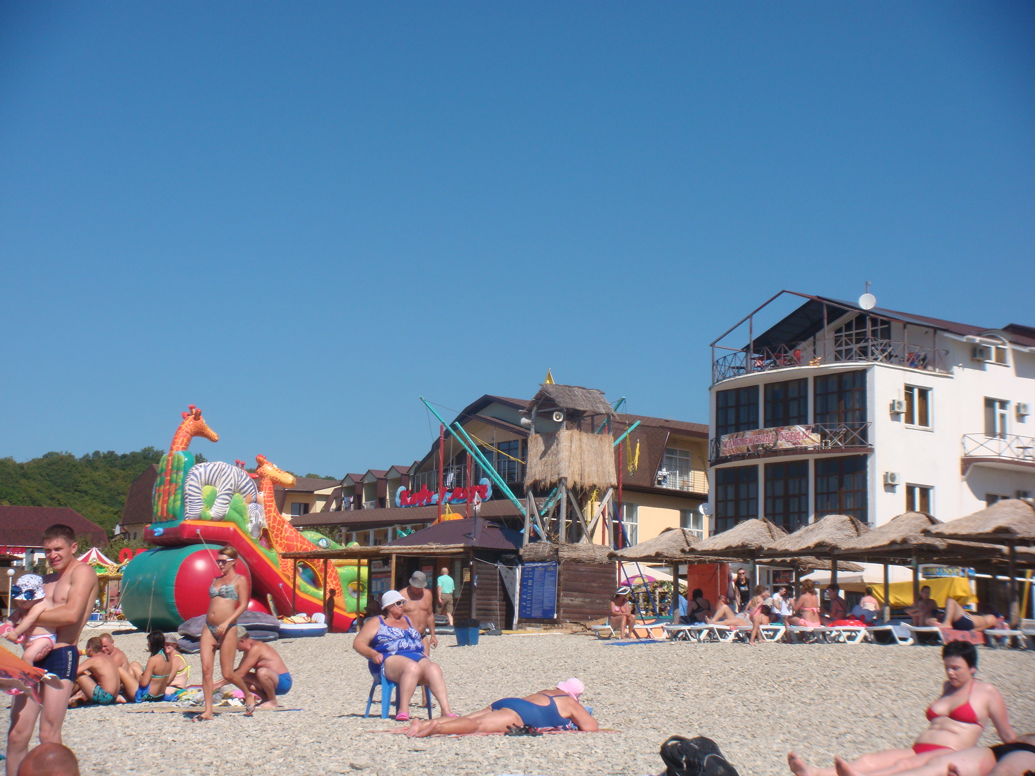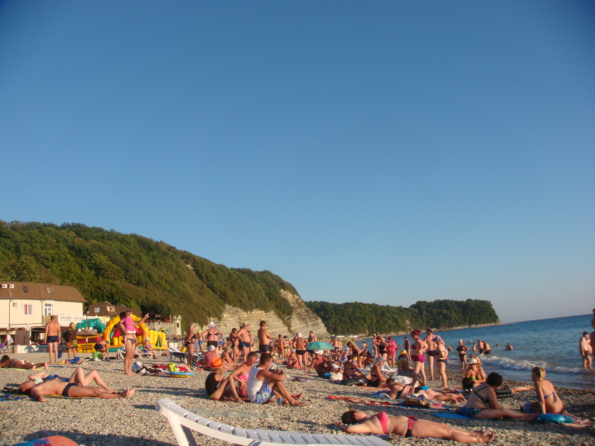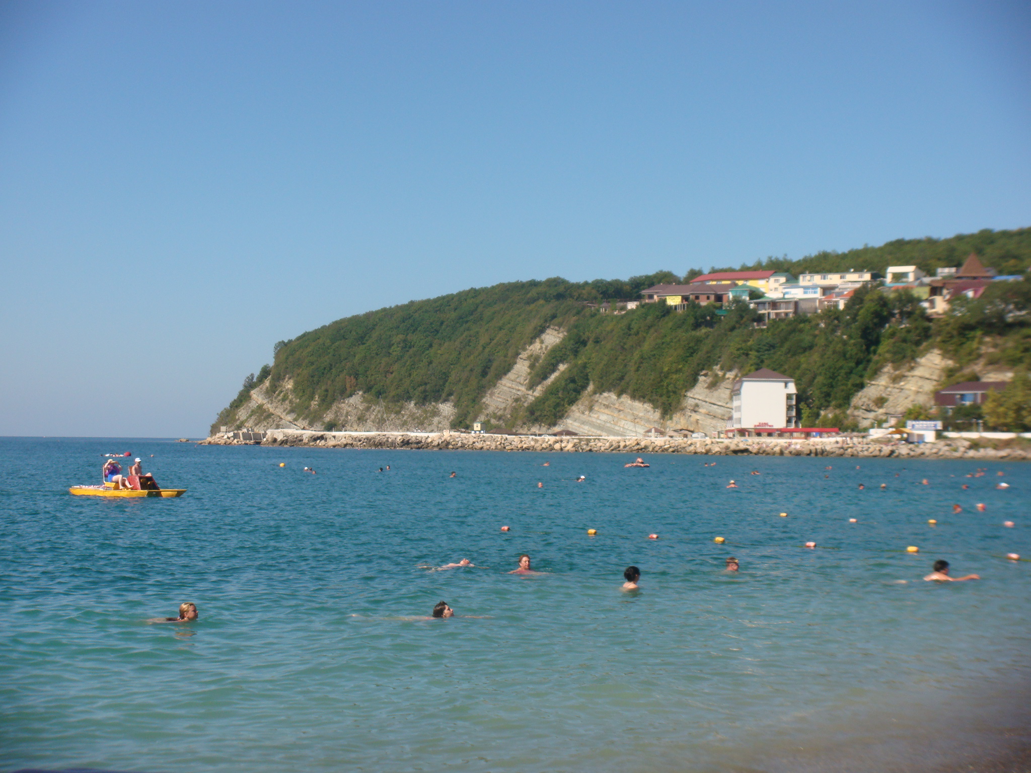 Пляж на южной окраине береговой линии Новомихайловского. Здесь меньше кафе, нет бассейнов, но также можно арендовать шезлонги и зонтики. У побережья сдают напрокат сап-борд за 500 рублей в час. В пляжном кафе «Дом рыбака» можно попробовать блюда из свежепойманной рыбы. Когда лучше ехать в Новомихайловский